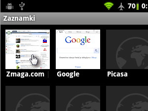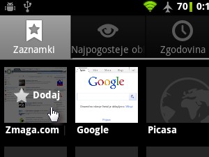 Sedaj lahko izberemo zaznamek spletne strani zmaga.com, ki smo ga v začetku lekcije dodali med zaznamke brskalnika.
