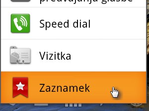Tu pritisnemo s prstom kjerkoli na prostoru brez ikon in držimo prst pritisnjen vsaj eno sekundo. |