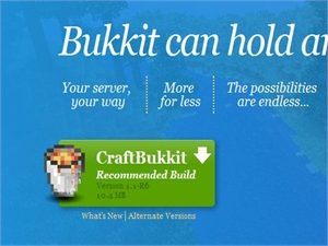 ![]() Kliknite na velik zelen gumb za prenos stabilne verzije strežnika Bukkit. Naj vas opomnim še enkrat, da če imate npr. strežnik verzijo 1.2.3 in Minecraft verzijo 1.1.0 ali 12w06a ali kaj podobnega, bosta nekompatibilna! Da boste igrali na tistem strežniku boste morali downgradati Minecraft, za to enostavno ''googlajte'': ''Minecraft downgrader [verzija]''.