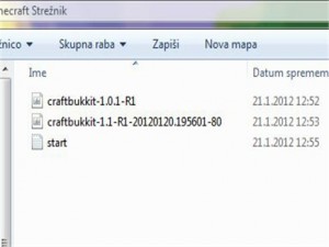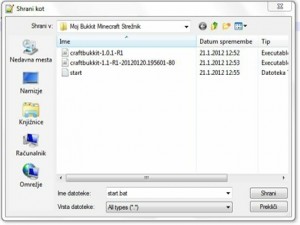Na koncu namesto ''craftbukkit-1.0.1-R1.jar'' mora pisati ime druge datoteke za strežnik Minecraft verzijo 1.1.0. |