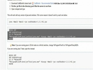 ![]() Sedaj odprimo Bukkit Wiki in kopirajmo tekst, ki ga potrebujemo za zagon strežnika. Bodite pozorni katero verzijo Jave imate! Če imate Java 7 boste morali uporabiti drugačni tekst za zagon strežnika. Da preverimo katero verzijo Jave imamo odprimo Ukazni poziv in vpišimo: java -version in to nam bo povedalo našo trenutno verzijo Jave.