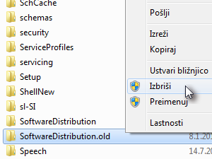 ![]() Računalnik sedaj ponovno zaženemo in če vse deluje brez problemov, lahko staro mapo SoftwareDistribution.old izbrišemo. |