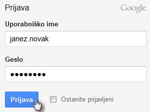 Vpišemo uporabniške podatke in se prijavimo.