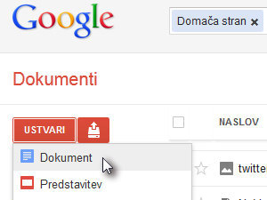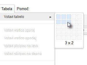 Ko boste odprli nov ali obstoječ dokument, kliknite na Tabela ...