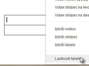 Kliknite znotraj tabele (v katerokoli celico) z desnim miškinim gumbom in izberite Lastnosti tabele.