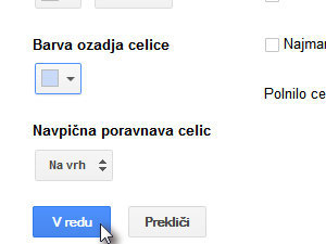 V novem oknu v polju barva ozadja celice nastavite barvo in tudi širino obrobe.