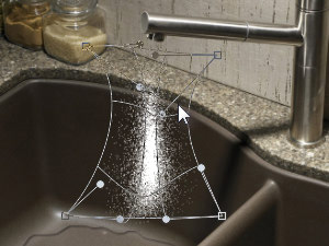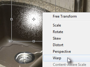 Sedaj pa se malo poigrajte z Warp orodjem, da boste razpršilo stisnili skupaj in ga prestavili v položaj pod pipo (glej sliko).