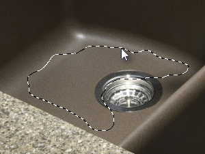 Ustvarite selekcijo na dnu umivalnika, kjer boste ustvarili vodo.