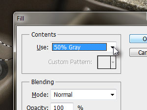 Bližnjica za okno Fill sta tudi tipki Shift + F5. V novem oknu Use izberite 50% Gray in kliknite na gumb OK. |