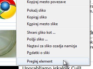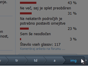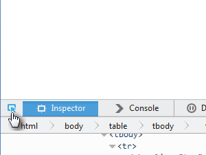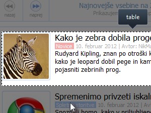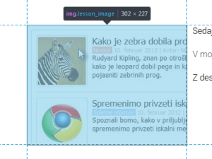 ![]() Sedaj se z miško pomikamo po strani in Firefox nam bo v realnem času prikazoval elemente, čez katere gre miška. |