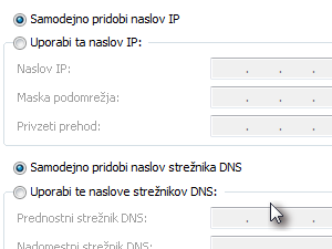 Ker računalniki med seboj komunicirajo na podlagi naslovov IP, potrebujemo vpisati tudi strežnik DNS, ki opravlja preslikavo imen, kot je npr. www.zmaga.com, v naslov IP 91.185.204.85.