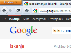 Najlažje to storimo, če ga zamenjamo z enim izmed obstoječih iskalnikov, ki se nahajajo zgoraj desno v padajočem meniju. |