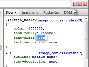 Tako lahko hitro pogledamo, kateri font oz. katera velikost fonta je bila uporabljena. Tudi sedaj lahko stil spremenimo. |