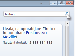 Najprej bomo dodatek Firebug namestili.