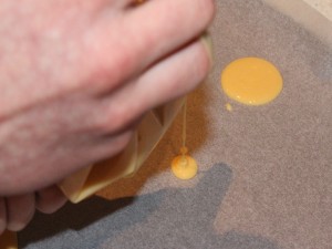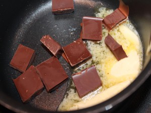 Indijančke damo v hladilnik, medtem pa vzamemo manjšo posodo, ter damo vanjo 140g čokolade in približno 100g masla. Maslo dodamo po občutku oziroma, da bo čokoladni preliv tekoč. |