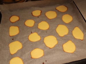 Maso nanesite na pladenj v obliki piškota. Lahko si pomagate tudi z vrečko, kateri prirežete konec.