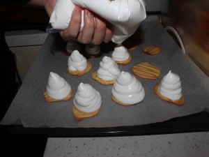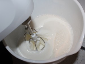 Še vroč kuhan sladkor nato prilijemo k snegu, ter nato vse skupaj še enkrat dobro premešamo. |