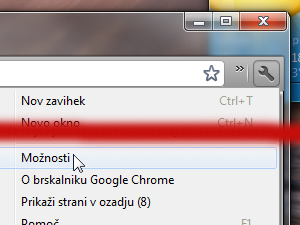 Odprite spletni brskalnik Google Chrome in kliknite na gumb Prilagodite in nadzirajte Google Chrome ter izberite Možnosti.