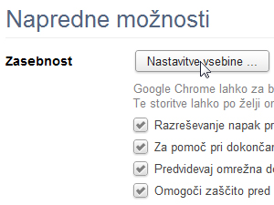 V razdelku Zasebnost kliknite na gumb Nastavitve vsebine ...