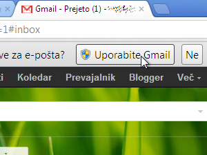 Če ste v 4. koraku označili možnost Dovoli spletnim mestom, da zahtevajo, da postanejo privzete rutine za obravnavo protokolov in se v 5. prepričali, da vnosa za povezavo mailto še nimate oz. storitve Gmail ni med možnostmi za izbiro, se bo v Google Chromu prikazala vrstica, ki sprašuje, če želite dovoliti, da Gmail odpre vse povezave za e-pošto.