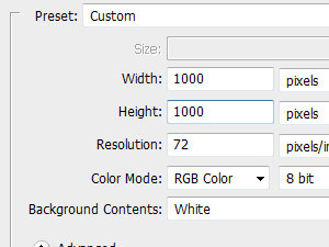 Jaz sem ustvaril dokument z dimenzijami 1000 x 1000 pik.