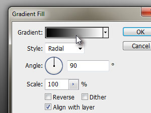 V novem oknu nastavite Style na Radial in nato kliknite na preliv barv. |