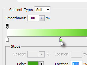 Odpre se okno za nastavljanje preliva barv, kjer pod prvi jeziček nastavite belo barvo (glej sliko), nato nekje na sredini dodate svetlo barvo poljubne barve ...