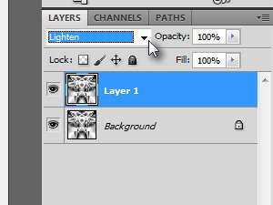 Kliknite nato zgoraj na Edit, Transform in izberite Flip Horizontal. Layerju določite senčenje na Lighten (glej sliko). |