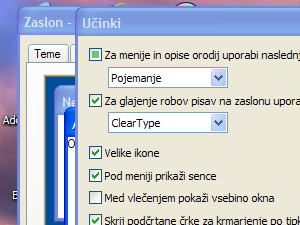 Prikaže se nam zaslon Učinki, kjer izberemo oz. označimo Velike ikone.