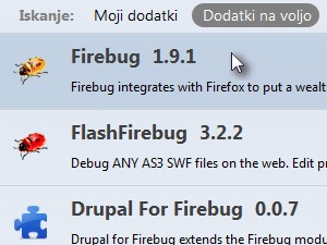 Kako dodatek namestite, si lahko ogledate v lekciji Firebug dodatek za Firefox