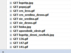 Ko se bo stran naložila, bomo dobili izpisane vse elemente spletne strani (slike, dodatne datoteke, ...), ki so vključene na prikazani strani.