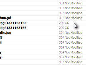 Če vidite odgovor 304 Not Modified, to pomeni, da je brskalnik namesto vsebine iz strežnika prikazal vsebino iz lastnega medpomnilnika (ang. cache-a) in so zato časi nalaganja precej manjši. Če medpomnilnika ne želite uporabljati, potem pri pritisku na gumb Osveži držite pritisnjeno tipko Ctrl. Če vidite rezultat 200 OK, je bila vsebina tudi v resnici prenesena iz spletnega strežnika. |