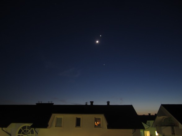 Danes je ponovno dober razgled, saj planetoma dela družbo tudi Luna.