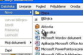Ustvarili bomo novo mapo. Kliknite na Datoteka, Novo in izberite Mapa. |