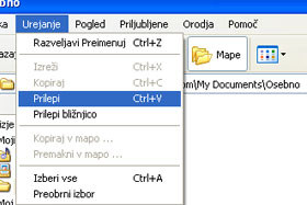 Na novo kreirano mapo kliknemo dvakrat in ko smo v njej, izberemo Urejanje in Prilepi (bližnjica za to je CTRL+V).
