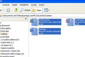 Držimo gumb na miški in jo povlečemo, tako da zajamemo vse tri datoteke. Lahko pa držimo tipko CTRL in z miško posamično označujemo datoteke