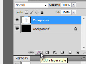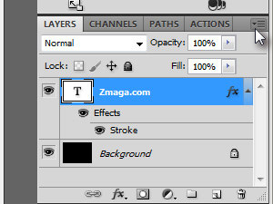Layerju z besedilom smo dodali efekt. Ker pa ne moremo dodajati layerjem istega efekta večkrat naenkrat, mu bomo najprej spremenili tip in nato ponovili postopek.