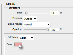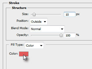 Odpre se vam novo okno, kjer Size določite 10 px in Color preko izbirnika barvo, ki je nekje vmes med besedilom in prvo obrobo.