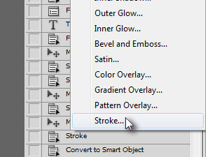 Kliknite sedaj na ikono Add a layer style in ponovno izberite Stroke... |