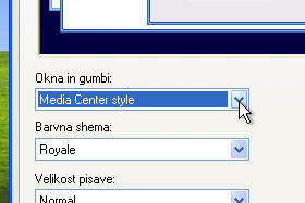 Okna in gumbi preko izbirnika določite Media Center style.