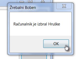 Na koncu kliknemo le še gumb Izžrebaj in računalnik nam v novem okencu, izbere poljubni element.