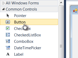 Na levem robu poiščite paleto z orodji, kjer izberete Button, da vam Visual Basic ustvari gumb.