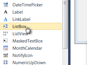 Nato podobno preko palete orodij ustvarite še en Listbox.