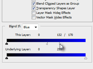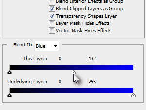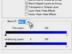 V novem oknu spodaj Blend If preko izbirnika določite Blue. |