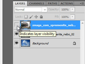 Kar naenkrat vam bo uporaba maske pokazala spodnji layer z nebom.