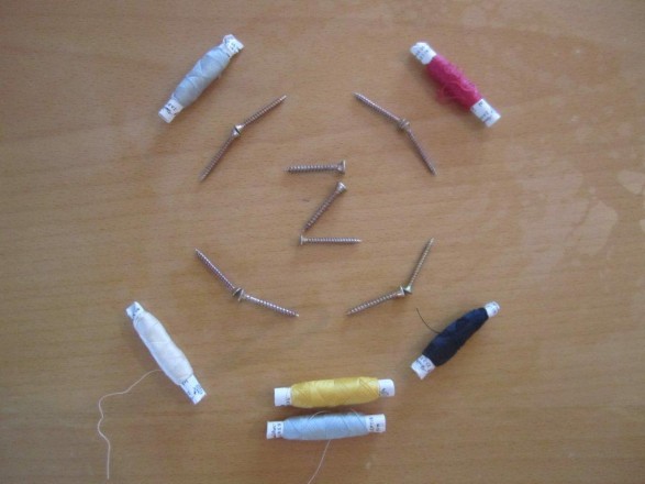 Sedaj pripravite sukanec in nekaj vijakov.