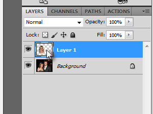 ![]() Ponovno označite zgornji layer, ki predstavlja prej prilepljeno glavo in ga tudi naredite ponovno vidnega (glej sliko). |