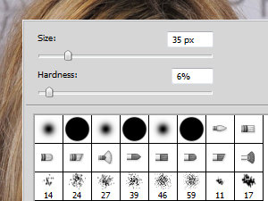 ![]() Kliknite z desnim miškinim gumbom na dokument in nastavite Hardness na zelo malo vrednost. Size pa določite poljubno velkost. |