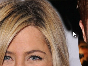 ![]() Sedaj bomo odstranili določene dele fotografije, na kateri je Brad Pitt. V mojem primeru so to lasje Angeline in jih nameravam odstraniti, saj so širši kot lasje Jennifer. |