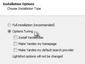 ![]() Po prenosu datoteke zaženemo namestitveni program. Pri namestitvi priporočam, da izberete opcijo Options Tuning in odstranite kljukice pri vseh opcijah, saj tako na računalnik ne boste nameščali dodatnih nepotrebnih programov.